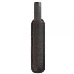 Covered hole in back of pouch allows baton to be placed in pouch fully expanded