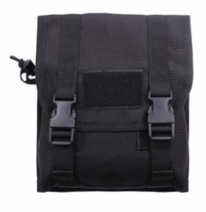 This MOLLE Utility Pouch is ideal for magazine rounds or small electronics. Measuring 8" x 8" x 2.5" this MOLLE compatible pouch features a front flap with 2 side release buckles, a cinch cord with barrel lock adjuster, and can hold 6 30-round M4 mags. Also features a small loop field for patches. Made of 600 denier polyester.