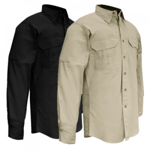 Fabric 100% Cotton 5.4 oz. Canvas.Features Durable & ComfortableTriple stitchingCape back with moisture management meshLong sleeves with roll-up strapsHidden button down collar