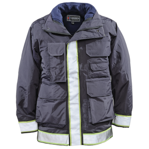Waterproof breathable ASTM F 1671 Blood Born Pathogen Resistant BioTex outer shell. Scotchlite reflective trim with 1/4" lime accent edge on the front, bottom, back and cuffs. Four pocket construction with radio pocket, patch pocket and lower cargo pockets. Concealable hood. Removable fleece liner can be worn as a separate garment.